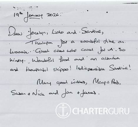 Thank you so very much for a very wonderful week aboard Looma yacht!